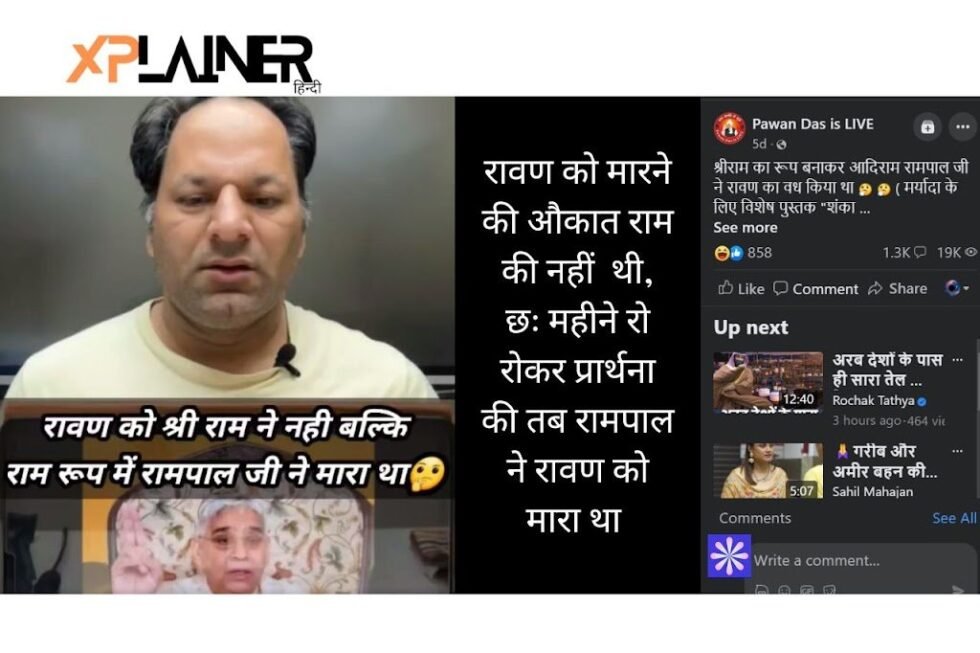 ढोंगी तथाकथित धर्मगुरु रामपाल के इस चेले का नया दावा है कि त्रेता युग में रावण का वध भगवान श्रीराम ने नहीं बल्कि इसके गुरु रामपाल ने किया था। अपने वीडियोज़ में यह आदमी यहाँ तक दावा करता है कि भगवान राम तो मर्यादा पुरुषोत्तम भी नहीं थे बल्कि इसका गुरु रामपाल असली मर्यादा पुरुषोत्तम है। गौरतलब है कि ये वही रामपाल है जो ना केवल अवैध गर्भपात सेंटर चलाने के आरोप में उम्रकैद की सजा काट रहा है बल्कि हत्या जैसे जघन्य अपराधों में भी सम्मिलित रहा है।